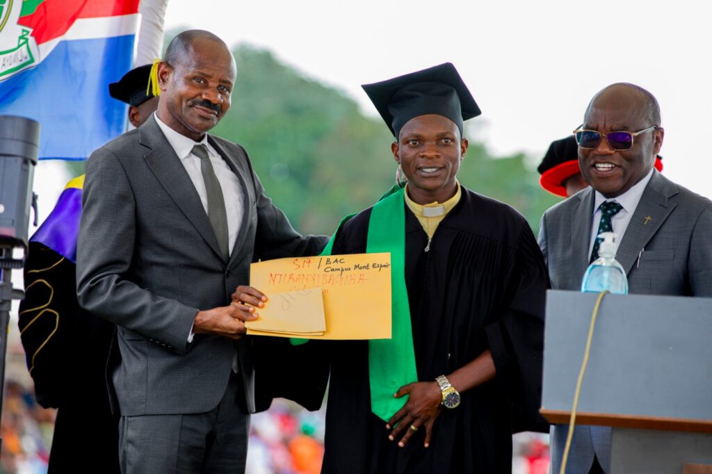 Addressing the graduating class, Bishop Nshimiyimana urged the new alumni to aspire to be more than mere employees, stating that “sustainable development does not rely solely on seeking existing jobs; rather, it depends on your ability to create value, innovate, and lead with an entrepreneurial spirit.”